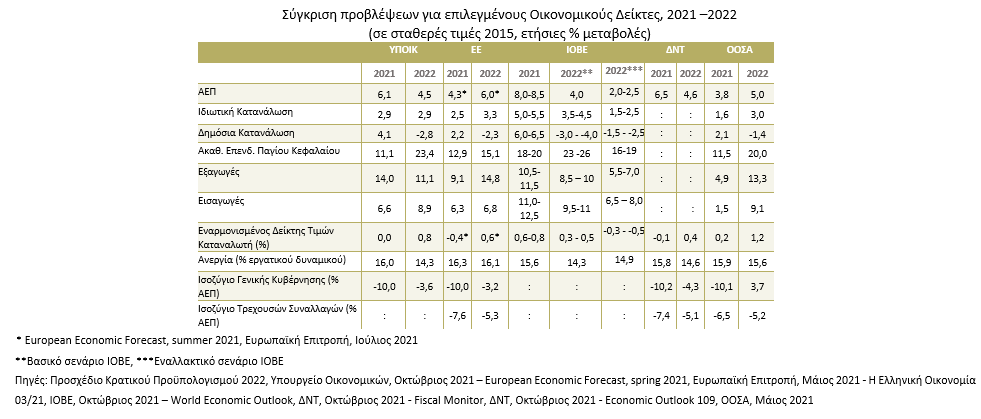Οι εξελίξεις σχετικά με την πανδημία, ο βαθμός και η ποιότητα αξιοποίησης της αυξημένης ρευστότητας (Ταμείο Ανάκαμψης-τραπεζικές χορηγήσεις), η έκταση των παρεμβάσεων πολιτικής για την ανάσχεση των επιπτώσεων της πανδημίας, η δυναμική του τουρισμού και η τάση στις τιμές της ενέργειας θα είναι οι πλέον καθοριστικοί παράγοντες του ΑΕΠ φέτος και το 2022.