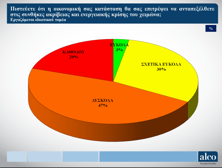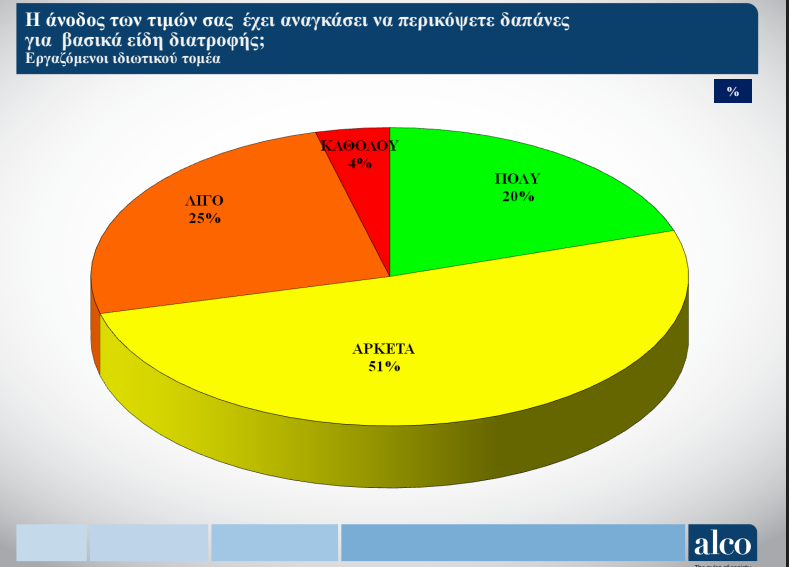 Παράλληλα το 71% των ερωτηθέντων μισθωτών του ιδιωτικού τομέα δήλωσε ότι έχει περικόψει την αγορά βασικών ειδών διατροφής λόγω της εκτόξευσης των τιμών.