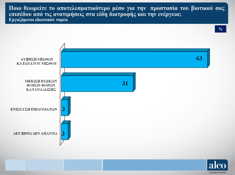 - Το 63% δήλωσε ότι η μόνη λύση είναι αύξηση των μισθών και κυρίως του κατώτατου μισθού