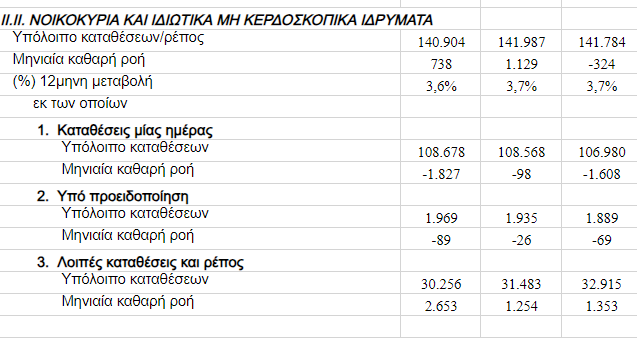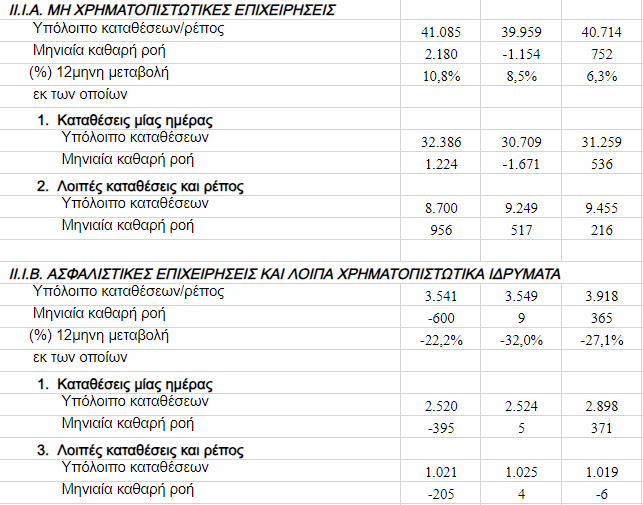 II. Καταθέσεις της εγχώριας οικονομίας στα εγχώρια πιστωτικά ιδρύματα