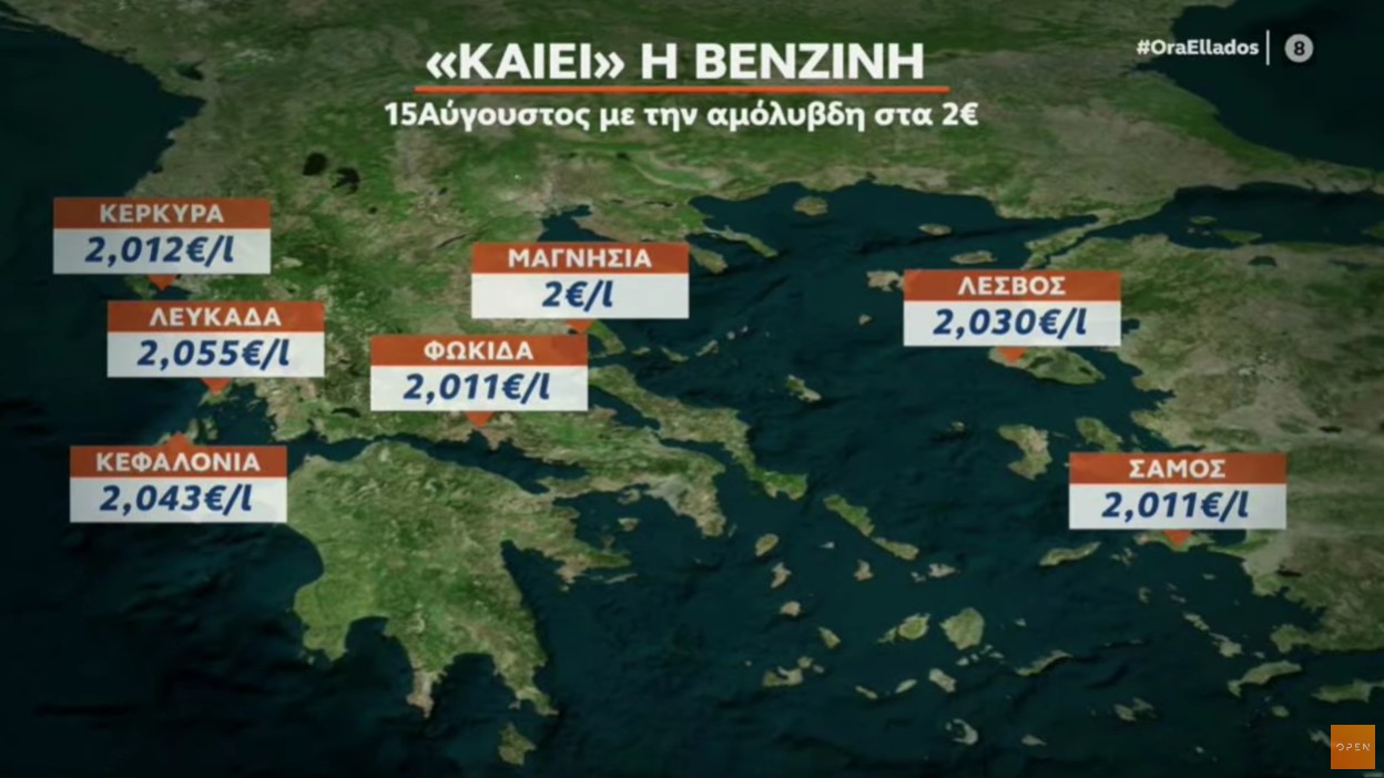 Οι 15 περιφέρειες όπου η βενζίνη ξεπέρασε τα 2 ευρώ στις 15 Αυγούστου: