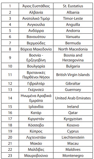 Με βάση το πιο πάνω κριτήριο τα κράτη αυτά, για το φορολογικό έτος 2022, είναι τα ακόλουθα: