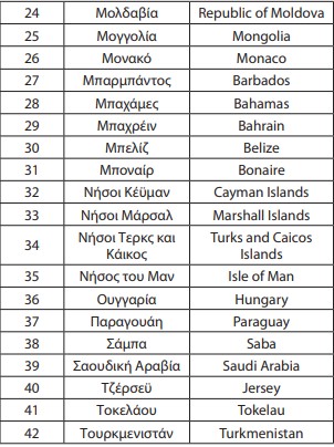 Σαράντα δύο κράτη περιλαμβάνει ο νέος κατάλογος της ΑΑΔΕ με τις χώρες οι οποίες έχουν προνομιακό φορολογικό καθεστώς και οι συναλλαγές που σχετίζονται με αυτές θα μπαίνουν στο στόχαστρο των ελεγκτικών αρχών.