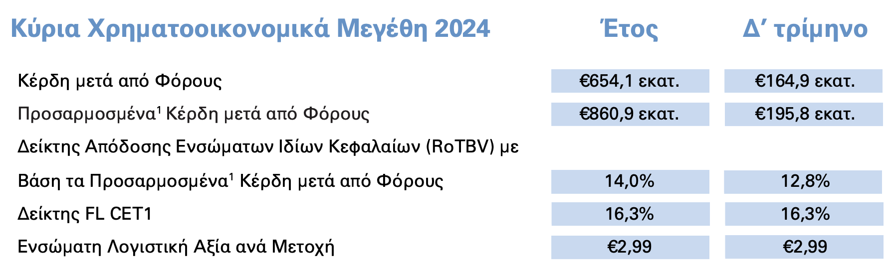 - FL CET1 Ratio 16,3% στο έτος (+2 ποσοστιαίες μονάδες αύξηση σε σχέση με το 2023)