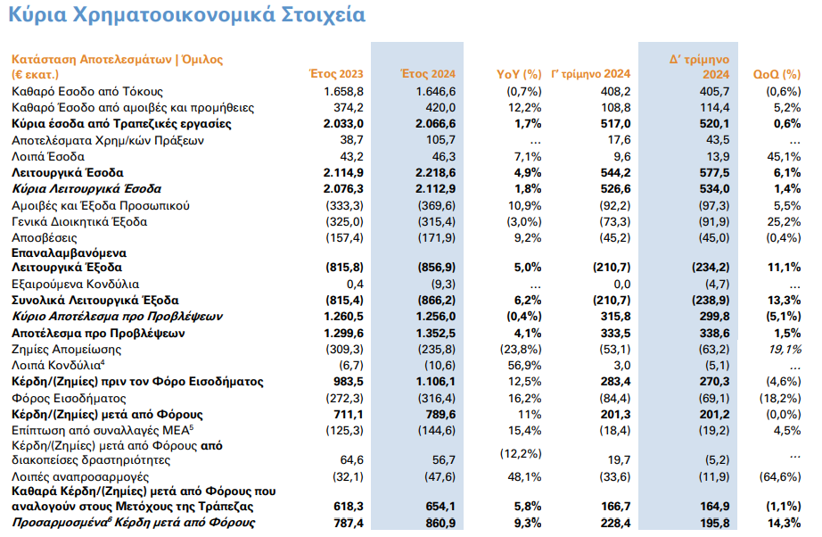 - Προσαρμοσμένα κέρδη μετά από φόρους στα 861 εκατ. ευρώ, αυξημένα κατά 9% σε σχέση με το 2023