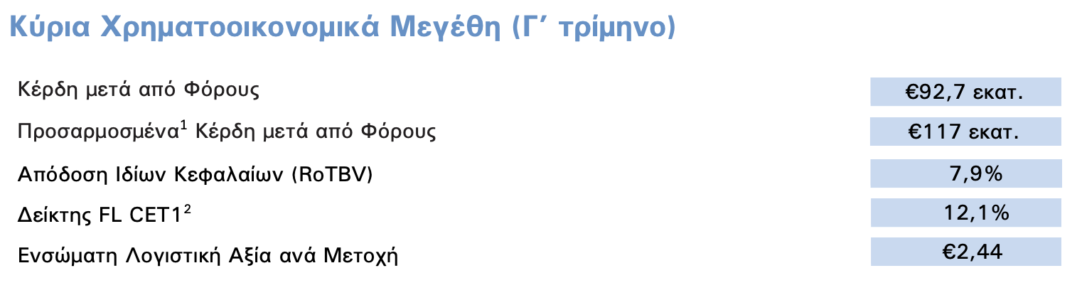 Σύμφωνα με την ανακοίνωση της τράπεζας οι κύριες εξελίξεις το Γ τρίμηνο έχουν ως εξής: