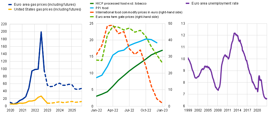 Οι συγγραφείς του άρθρου υπογραμμίζουν εξάλλου ότι ο πόλεμος προσέθεσε ένα ακόμα βάρος στις συσσωρευμένες πληθωριστικές πιέσεις της ευρωζώνης κατά τη διάρκεια της ανάκαμψης μετά την πανδημία και ανέβασε τις τιμές καταναλωτή, ειδικά στην ενέργεια και τα τρόφιμα.