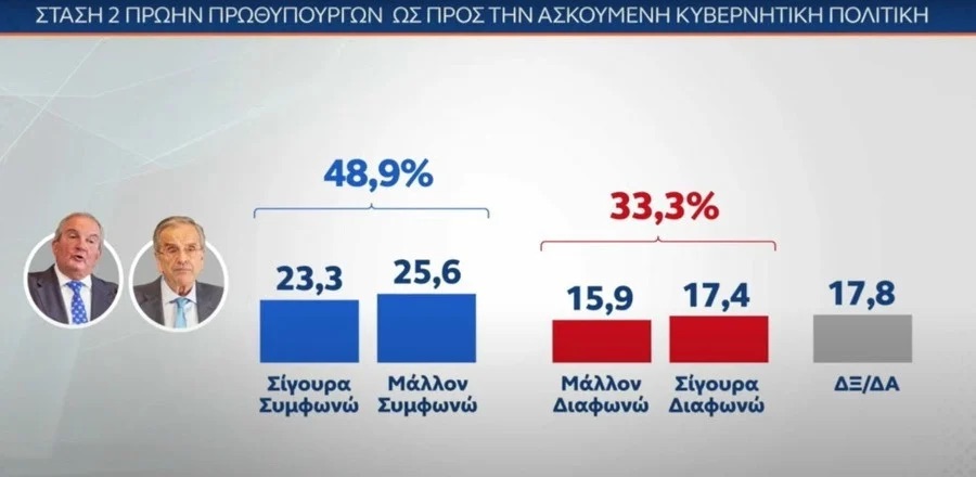 Ως προς τη στάση των δύο πρωθυπουργών ως προς την ασκούμενη κυβερνητική πολιτική οι συμμετέχοντες στην έρευνα απαντούν ότι: