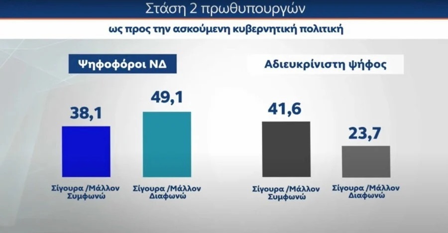 Στους ψηφοφόρους της ΝΔ συμφωνώ και μάλλον συμφωνώ απαντά 38,1% και σίγουρα και μάλλον διαφωνώ απαντά το 49,1%