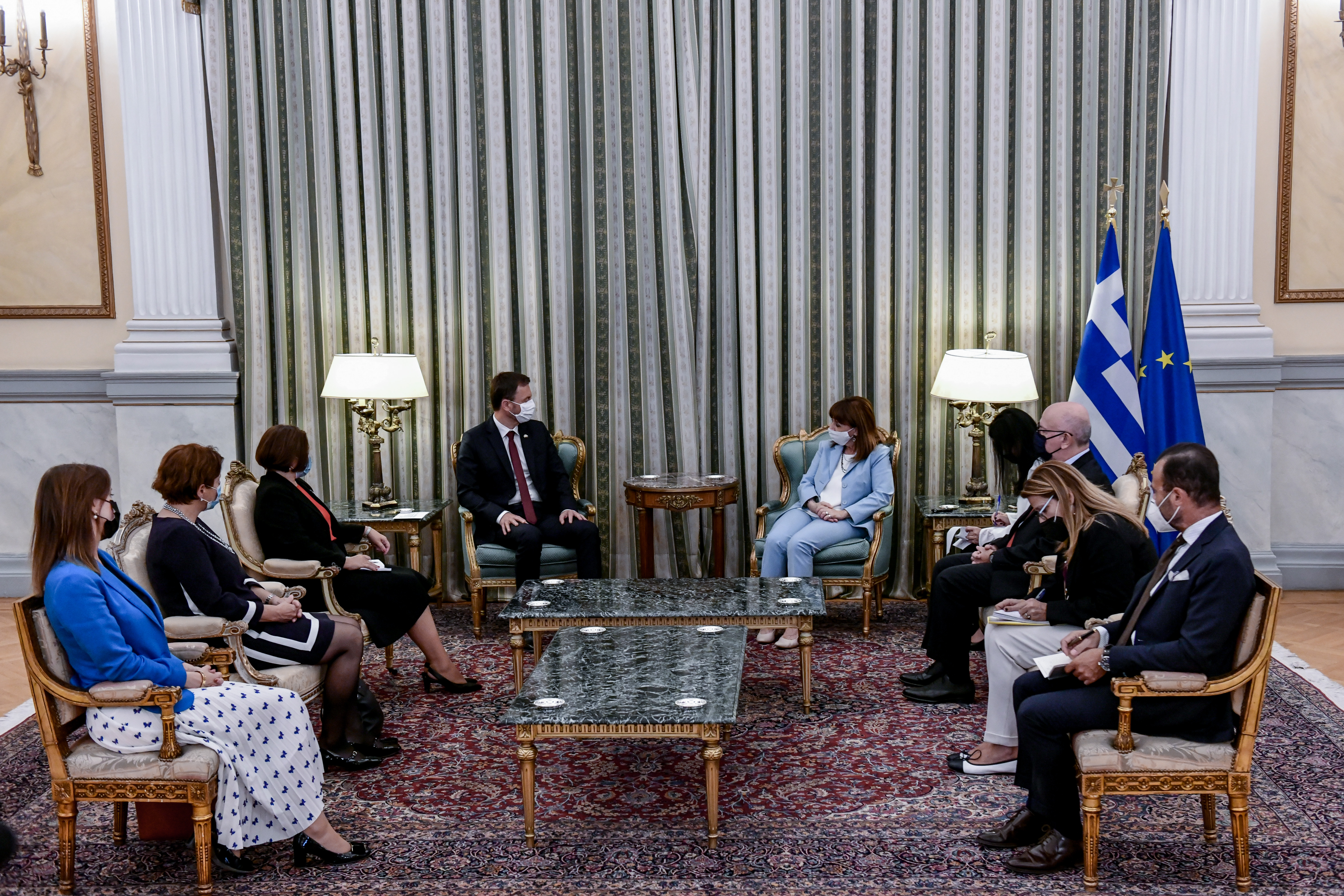 Οι άριστες σχέσεις Ελλάδας-Σλοβακίας και οι δυνατότητες διεύρυνσης της διμερούς συνεργασίας βρέθηκαν στο επίκεντρο της συνάντησης, που είχε η Προέδρος της Δημοκρατίας Κατερίνας Σακελλαροπούλου με τον πρωθυπουργό της Σλοβακίας Έντουαρντ Χέγκερ, στο Προεδρικό Μέγαρο.