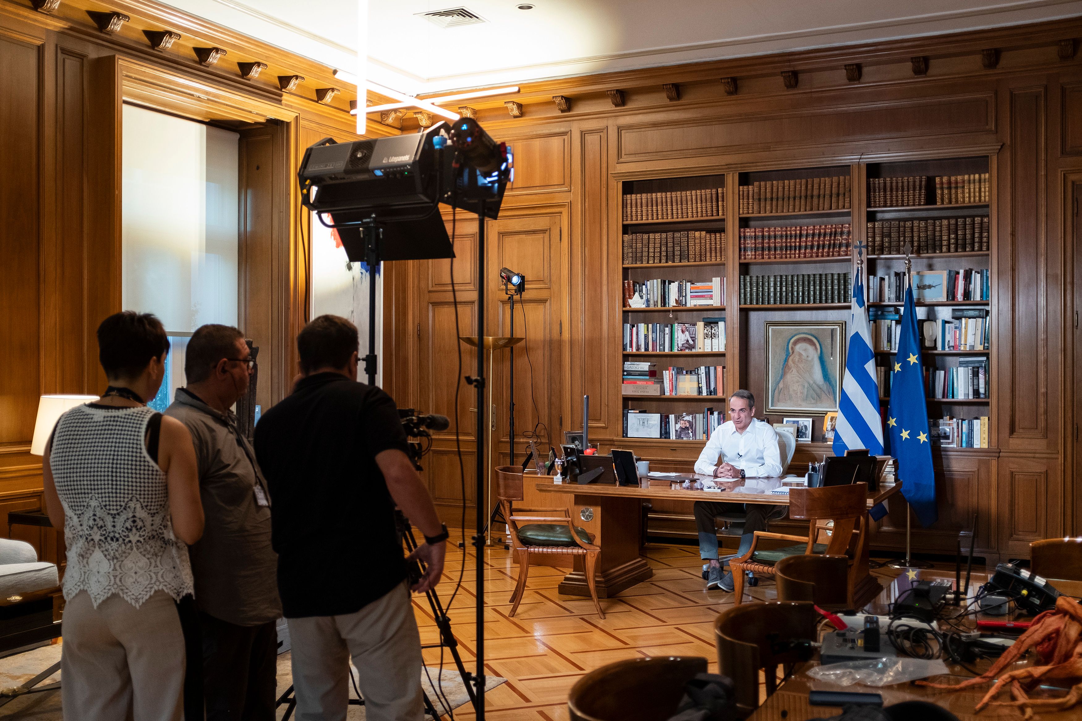*Κυριάκος Μητσοτάκης:* Κατ’ αρχάς σας ευχαριστώ που με φιλοξενείτε στην εκπομπή σας, επιτρέψτε μου να θέσω κάποια πράγματα στο σωστό πλαίσιο. Όπως γνωρίζετε, πάντοτε εκδηλώνονταν πυρκαγιές στη Μεσόγειο, εδώ και χιλιετίες. Αυτό που άλλαξε τα προηγούμενα χρόνια, ως συνέπεια της κλιματικής αλλαγής, είναι η έντασή τους. Πράγματι, είχαμε μία καταστροφική φωτιά στη Ρόδο, όμως επηρέασε λιγότερο από το 15% του νησιού, το 15%. Το νησί έχει επιστρέψει πλήρως στην κανονικότητα. Δεν υπάρχουν ενεργές εστίες αυτή τη στιγμή και η πρόγνωση του καιρού για τις επόμενες 15 ημέρες είναι σχετικά καλή.