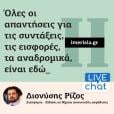 Μετά το τέλος κάθε live chat θα βρίσκετε τις απαντήσεις σας δημοσιευμένες και γραπτώς από τον...