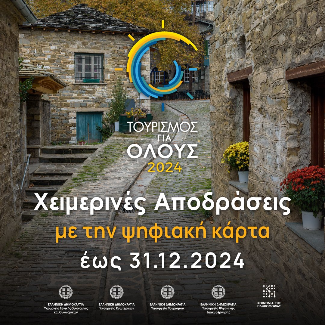 Υπενθύμιση από το υπουργείο Τουρισμού στους δικαιούχους του προγράμματος «Τουρισμός για όλους 2024» για εξαργύρωση της ψηφιακής κάρτας έως τις 31 Δεκεμβρίου 2024.