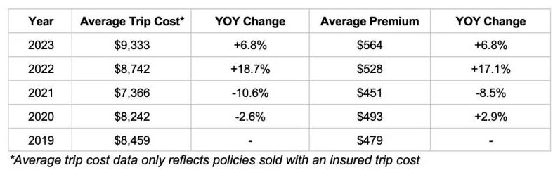 - Το μέσο κόστος ταξιδιού για τα συμβόλαια που αγοράστηκαν στο Squaremouth ξεπέρασε τα 9.000 δολάρια.