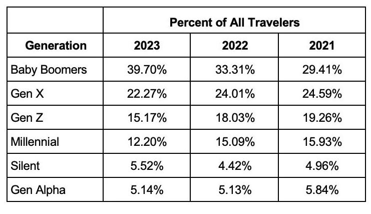 Οι Baby Boomers αντιπροσωπεύουν το 40% όλων των ταξιδιωτών του καλοκαιριού φέτος, σε σύγκριση με το 33% το περασμένο καλοκαίρι και το 29% το 2021.
